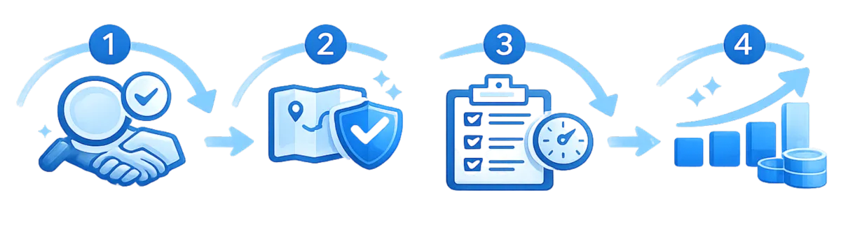 You’ll receive a scoped estimate and recommended starting path (Core, Growth, or Strategic Partner). From there, most clients: